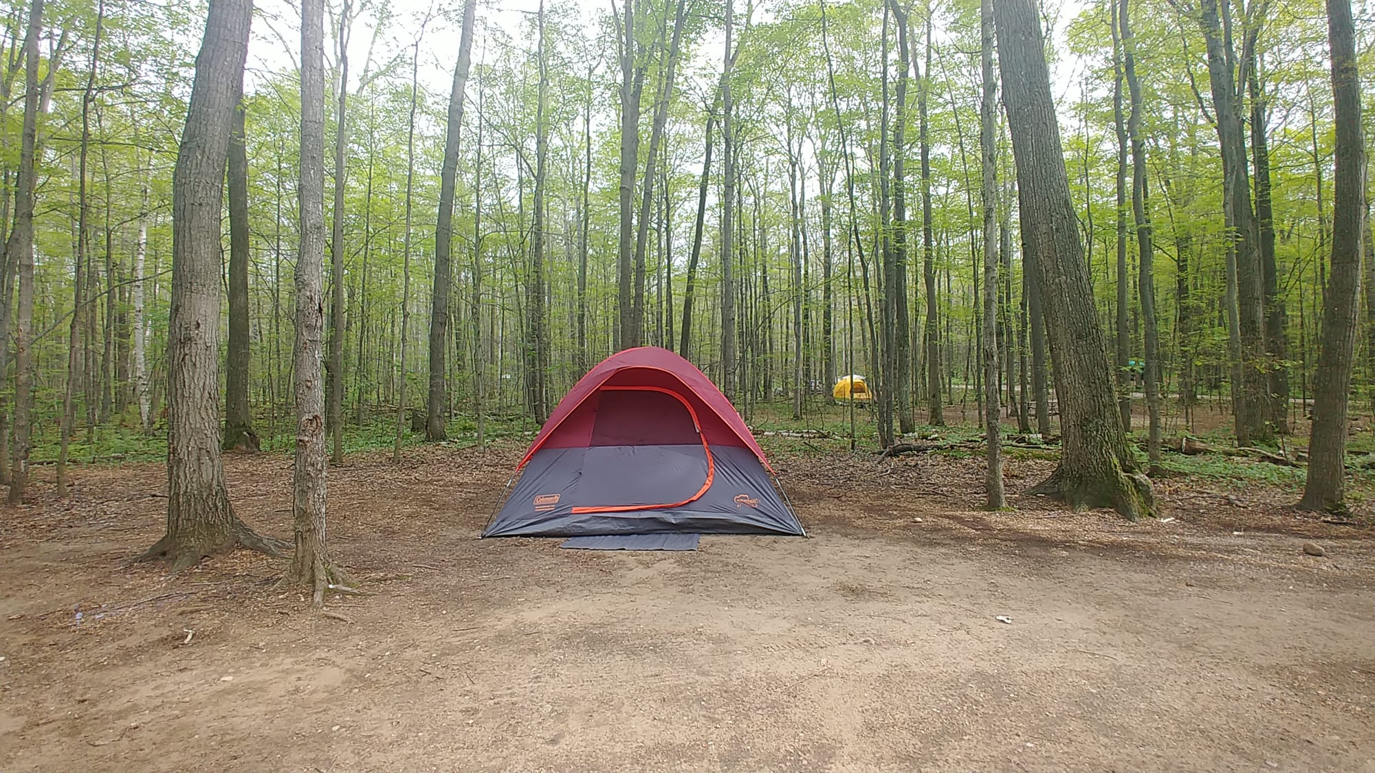 I wouldn't rate our campsite itself very highly - it was pretty bland, nothing noteworthy or special to write home about. The tall trees around us didn't provide much by way of privacy; you can see in the image below how we could clearly see tents in other campsites around us.