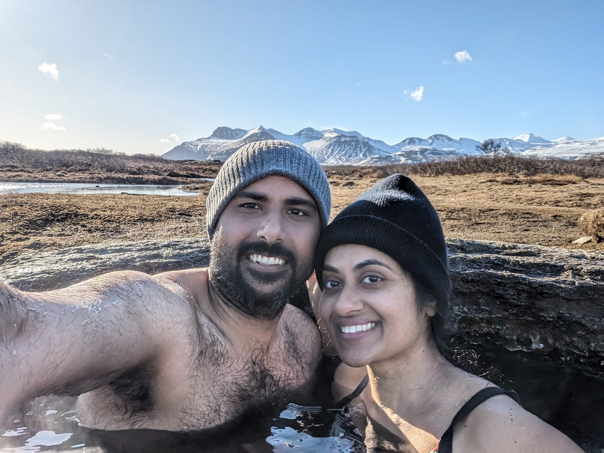 Once back, we prepared and ate a late lunch, realizing all the other guests had left. We shared our dessert with a girl from Poland who was there on a summer work assignment, and was responsible for keeping the space clean. She told us about a free hot springs in the area which we decided to check out before heading down to Reykjavik. After cleaning up and packing away all our stuff, we drove there, only to have to return because I needed to use the washroom. Our second drive there was successful - luckily we were the only ones around at the time. The springs is accessible by crossing a small stream, and whoever maintains it has done a great job because it was a very clean space, and easy to get in and out. We had worn our bathing suit under our clothes, and there was a small space near the springs to change and store our clothes and shoes. It was a lovely end to our adventures.