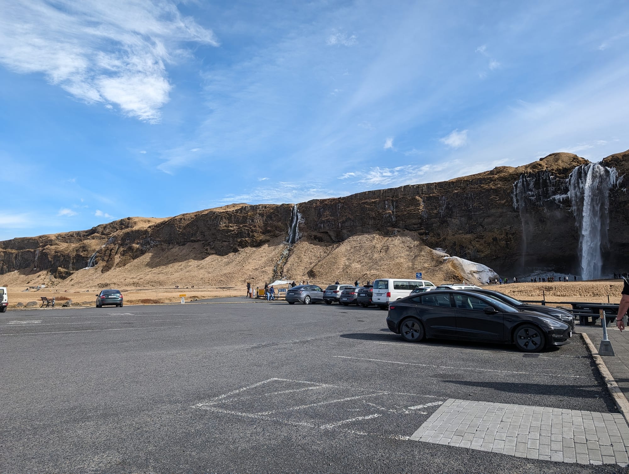 After eating breakfast at the apartments, we started on our way. Our first planned stop was Seljalandfoss. Though we parked, we noticed it was a bit busy and so didn't linger.