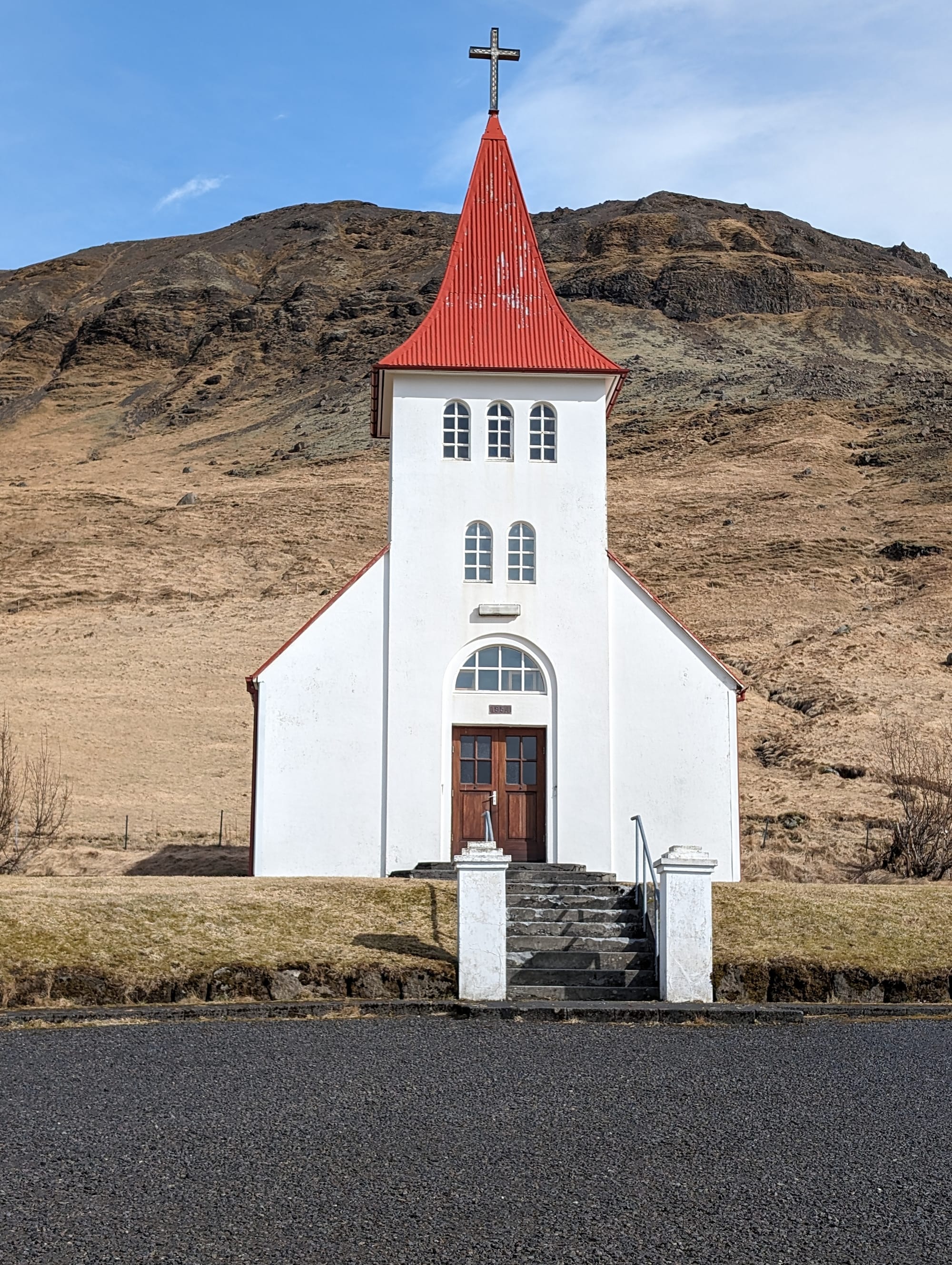 Ásólfsskálakirkja: We spotted a cool little village including a little church, from the side of the road and decided to investigate. The church is called Ásólfsskála and it was absolutely beautiful - not to mention quiet and completely deserted. Unlike Seljalandsfoss, we had this place completely to ourselves. We walked around and had a little photoshoot before we kept driving. Can you imagine how beautiful this would look when the grass is green in the summertime?