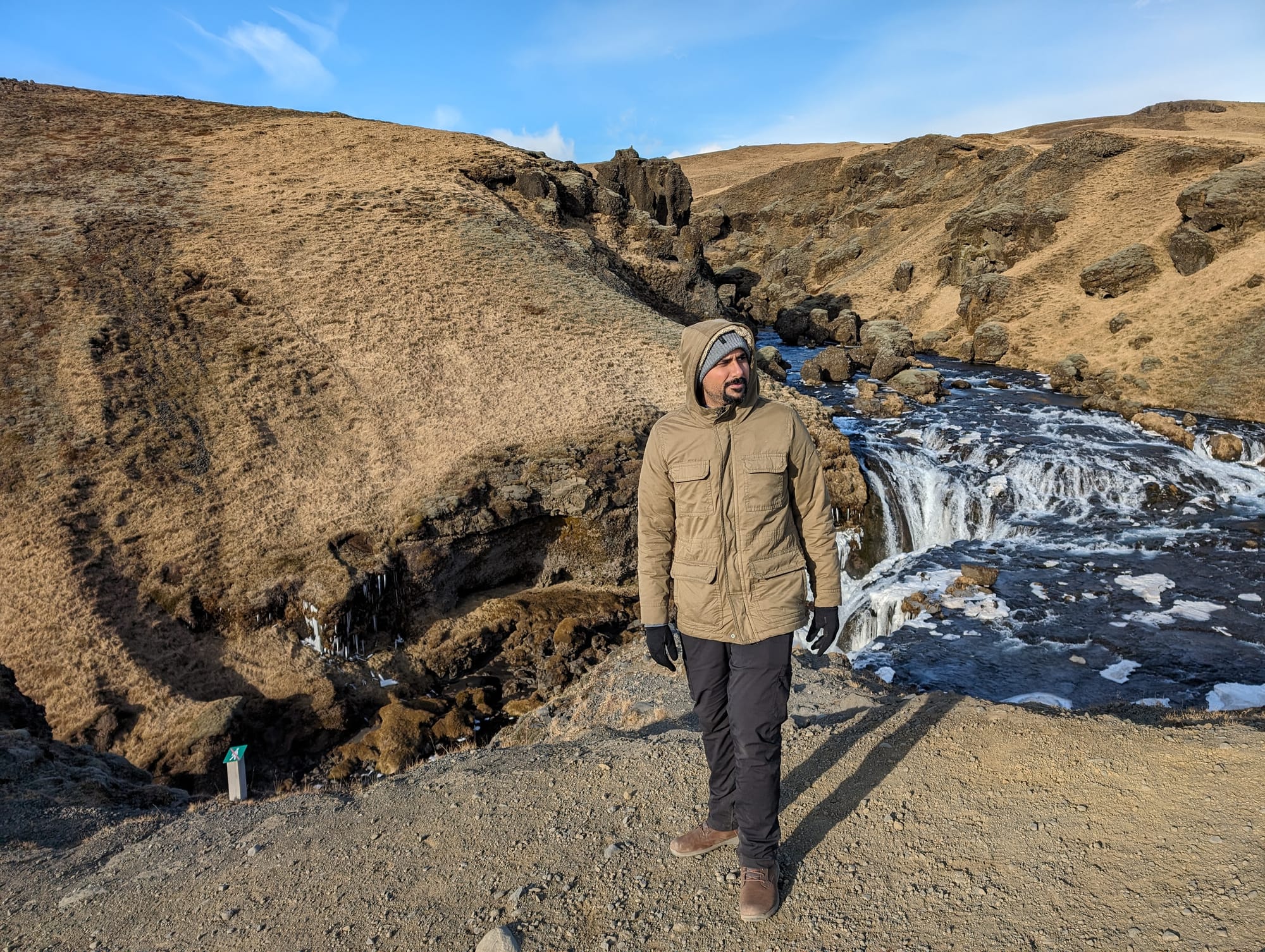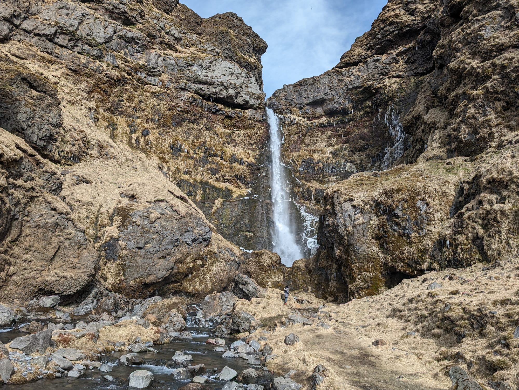 Irarfoss: We kept driving and soon chanced upon a wide clearing with a beautiful brook through rocks. There was only one car, and we decided to stop. We soon came upon this beautiful waterfall where we spent some time, climbing and taking pictures.