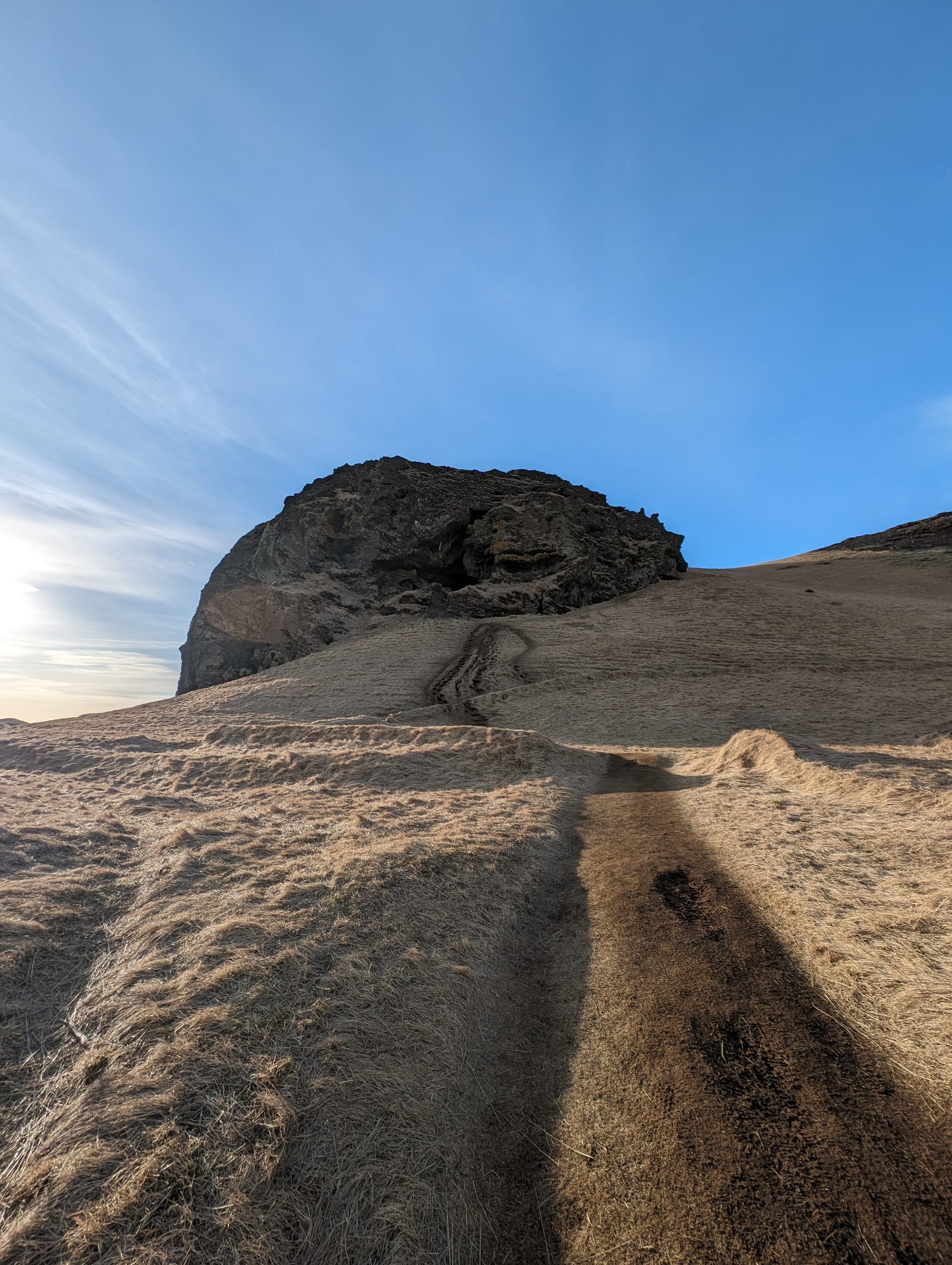Dyrholaey: Though you can hike there, we decided to drive up. This was a breathtaking drive up a steep incline with hairpin turns though fully paved; I've read from previous travellers that it may have been a gravel road at one point. There were spectacular views at the top of the lighthouse and the beach. Some offroaders had drawn a set of you-know-what with their vehicle on the beach that we could see from the top – I’m certain this is not the first set they’ve drawn (groan). It was super windy so we walked quickly, taking in as much of the view as we could.